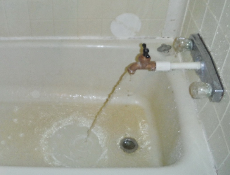 I've actually seen this a couple of times....Someone put a hose bib in the bath tub in place of the spout cover. I think a normal spout would have been cheaper and easier but this is definitely funnier.