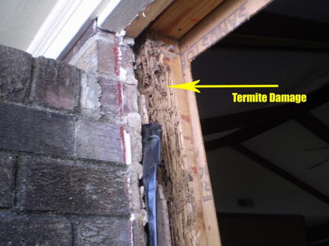 Believe it or not termites had turned these studs into dust at the touch of a finger. No ..... a home inspector does not have x-ray vision to find problems hidden in the walls. However there may be clues as to past termite damage or past termite treatment. On this home in Charleston an improperly constructed chimney allowed water to flow towards the house as seen in this picture.