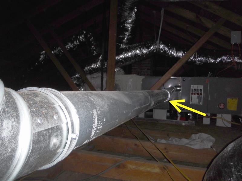 On this Charleston home the vent was not secure to the vent hood thus allowing deadly carbon monoxide to enter into the attic area. Three screws are required. Believe this or not this is actually not that uncommon. A condition like this could go unnoticed for a long time because it was in the attic. Good thing though....had it been in the home the occupants would be dead. It pays to get a home inspection.